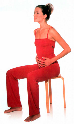 Гармонично развитая мускулатура спины и живота поддерживает в целости и сохранности позвоночник. Диафрагма свободно колеблется и делает возможным глубокое дыхание животом. Организм оптимально снабжается кислородом. В течение дня время от времени кладите руки на живот. Выпрямите спину и спокойно и равномерно вдыхайте и выдыхайте через нос.